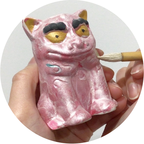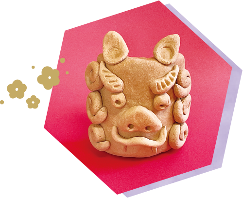 焼かずに固まる粘土を使って、自立する狛犬面をつくります。